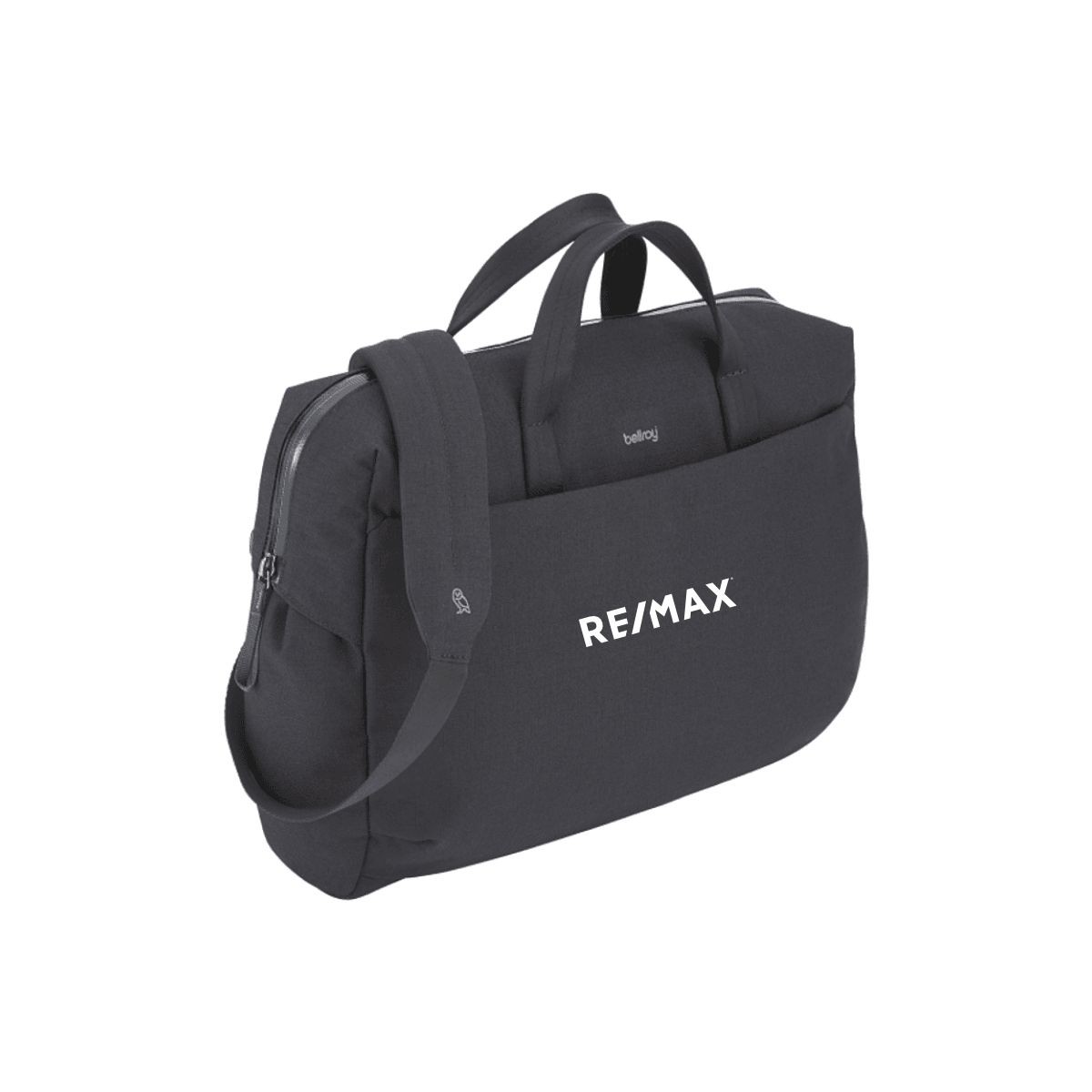 Embroidered RE/MAX logo on the front of the backpack